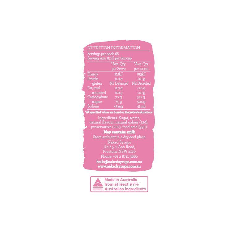 Naked Syrups Strawberry is like biting into a perfectly ripened Strawberry on a summers day. The Strawberry flavouring can be used as a soda, Cocktail/Mocktail, shakes, frappes or even in an iced tea.